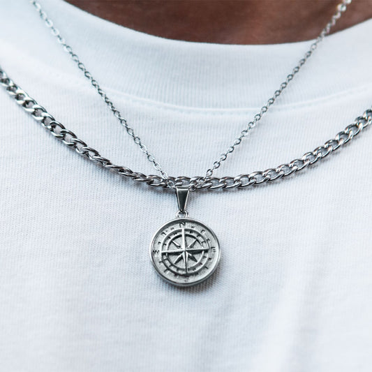 Kompas Set - Široký řetízek + řetízek kompas