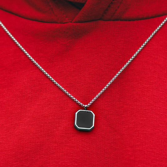 Řetízek Square stříbrno-černý - premium
