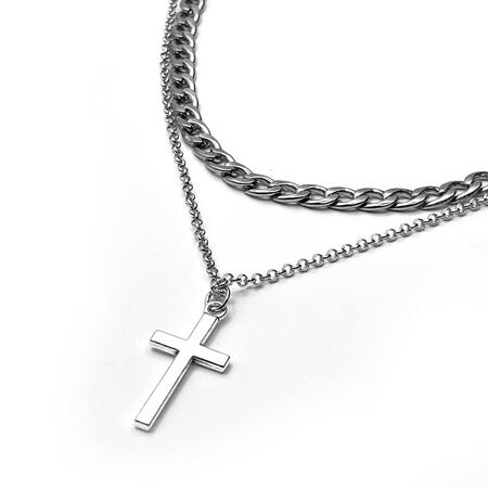 Set Křížek - Široký řetízek + řetízek s křížkem - premium