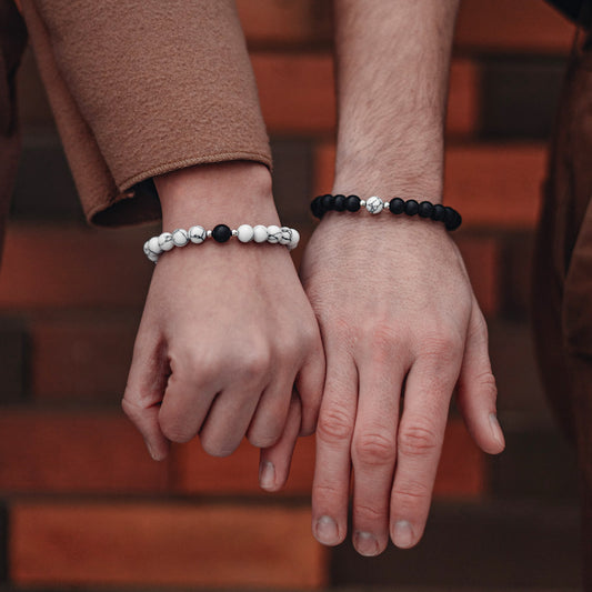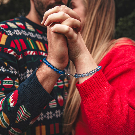 Párové náramky v odstínech modré se srdíčkem na magnet
