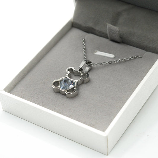 16% SlevaStříbrný řetízek medvídek s kamínkem