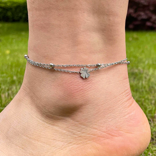 Náramek na nohu se čtyřlístky - štěstíčko